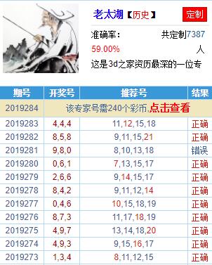 3d选号不仅需要正面能打的眼力,也需要多方参考总结的综合能力,参考点中和值的参考值不容小觑,往往会给你带来关键性的提示,和值专家老太湖虽然近期排名榜上不在前三的位置,但是上升的速度非常快,近期高效率和高准确率的战绩也获得了不少朋友的好评,近期的战绩是11期对10期,有和值问题,找他准没错!