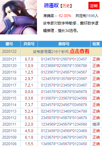 本周逍遥叹逍遥而不感叹,运势上来了比什么都强,在闭关修炼了好长一段时间之后,直选七码专家逍遥叹携荣耀而归,让自己的预测技术更上一层楼了,该专家对数字特敏感,在做选择的时候往往一下子就命中了的神奇感觉,顺带提一下最近的战绩,14期命中了13期呢!到目前为止持续命中了10期了,现在还在火热持续中!