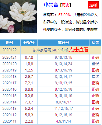 和值专家小梵音一直给人一种隐士高人的感觉,没有直接面对走势上的号码选择,却在侧面的和值区域内大放光彩,给了前行的人一条稳妥的明路,虽然本人是一位娇小可爱的女子,但是研究彩票的历史却有数十年之久,技术的过硬程度就不用我多说了吧,最近和值方面11期中9期,和值参考问题选择她有保障了!