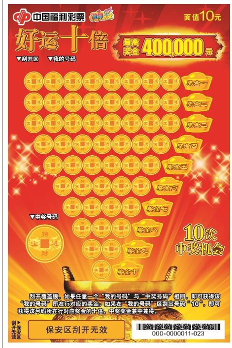 好运十倍(票面正面右下角,限物流码中批次号以“20”及“21”开头的批次参加本次活动,如下图示例)