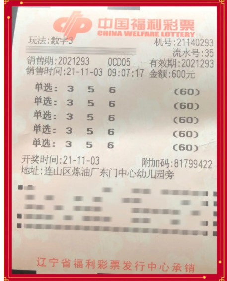 于是,赵先生在路过连山区炼油厂东门幼儿园旁福彩站时买了一张彩票,之后便去忙自己的事去了,没想到第二天早上一查开奖结果,立刻惊呆了,因为之前买了600注3D单选,现在每注中1040元,合计奖金60万余元。
