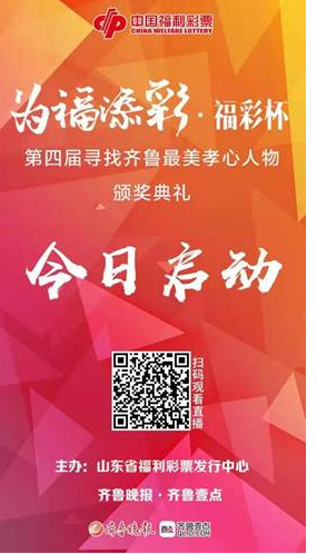 孝行齐鲁,爱暖人心。11月25日下午2点,“为福添彩·福彩杯”第四届寻找齐鲁最美孝心人物活动颁奖典礼将在济南举行。现场将对15位(个)齐鲁最美孝心人物(或团体)单项奖颁奖,表彰他们做出的孝行善举,树立齐鲁孝心榜样,将温暖传遍齐鲁大地。
