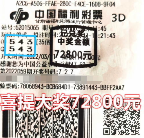 据中奖站点销售员樊女士介绍,这位中奖朋友是站点的老顾客了,别的游戏他都不参与,唯独喜欢玩3D,没事自己思考选号,对他来说是一种乐趣。而且好运总是眷顾他,这次除了收获7.28万元,另外还中了5200元小奖。