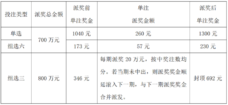 若未满40期派奖资金使用完毕,则当天销售结期后派奖终止;若满40期派奖资金未使用完毕,则至资金使用完毕当天销售结期后派奖结束。派奖资金超出部分由一般调节基金补足。