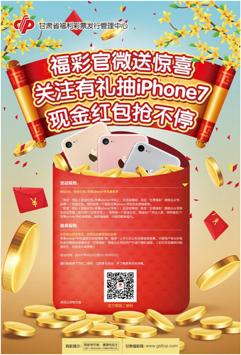 活动一:关注甘肃福彩官微领红包、抽iPhone7手机