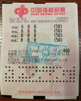5月23日,家住黔西南州贞丰县的刘女士凭借豹子号888喜中福彩3d直选100注,奖金合计104000元。