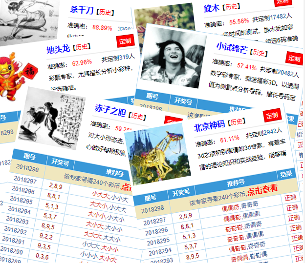 像近期表现比较好的,组选精选专家们稳扎稳打,输出非常稳定,而且整一块的专家表现都很好;直六专家小试锋芒,战绩也是非常可观,十四期错二期,正确率也是值得称赞的;大小专家赤子之胆,目前也是保持了连对,之前已经连对了十期,现在还在继续。专家们的战斗力一直都不弱,近期更是一个接着一个的发威,所以定制专家,你的中奖机会绝对大大提升,大奖中到爆棚。