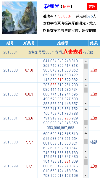 直选专家可谓集选号之精华,去掉那些无谓的猜测,去掉那些模糊的干扰,无论您是想要直选定位,还是直选精选,都可助您一眼锁定奖号,只等出号中奖即可。本期推荐的是直选精选专家中的一员彩痴迷,痴迷于彩票研究,对于数字型彩票更是拿手,3d在他眼里简直就是小case。当然当前的战绩也是相当抢眼,几乎一直保持着连对的预测状态,所以这一阶段选择一个正确率极高的直选专家蹭一波中奖热度,也不失为是一种很好的选号选择!