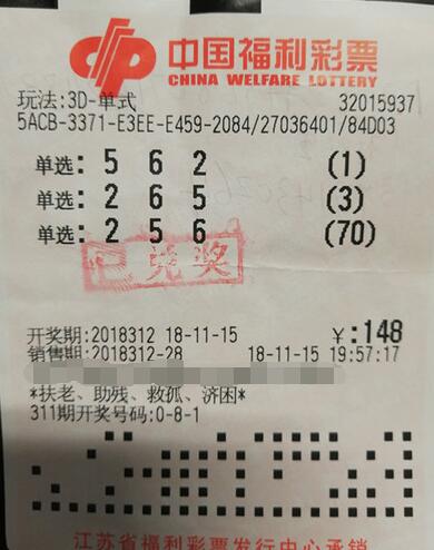 有时候,运气到了真是挡也挡不住的。11月15日,南京彩民王女士按照往常习惯准时到达一家投注站购买双色球。之后,她准备离开时见一位在选投3D的彩友正纠结于自己的号码,结果还是放弃了该号码。王女士瞄了一眼那位彩友选的“256”这组号码,感觉不错,就决定投注这组号码,并且另外打了“562”和“265”,一共三组号码。