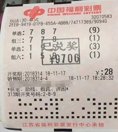 今年40多岁的柏先生是一名装潢店个体老板。在不忙的时候,他会隔三差五地到离家不远的投注站玩把彩票。在众多的玩法中,他觉得3D比较简单,因此尤其喜爱3D玩法。11月17日晚饭后,柏先生又来到彩票站,按照他先前连守的几期号码,在2018314期打了9倍“7-8-7”3D单式票、1倍“7-7-8”组三票,随同也打了其它的几倍号码,尔后离开了。由于忙于给客户装修,他在第三天才想到有张彩票,还没核对了。找出来一看,猛然发现竟然中奖了。可那几天他忙于工作,就没有来得及兑奖。直至27日下午,工程结束,柏先生才来到投注站兑奖。经确认,他共中得奖金9706元。