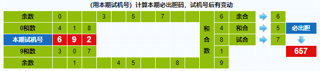 本期试机号胆码计算器推荐胆码:657