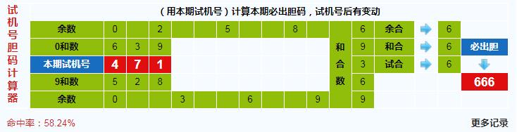 本期3d试机号胆码计算器给出结果:666