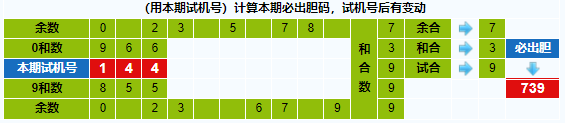 本期试机号胆码计算器推荐胆码:739