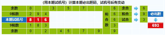本期试机号胆码计算器推荐胆码:693