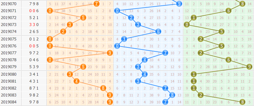 个位分析:上期是开出了8号球,号码又是走冷了,近期个位上冷号开出很频繁,号码是不是就是偏向冷号开出,本期也要看好大遗漏的号码。
