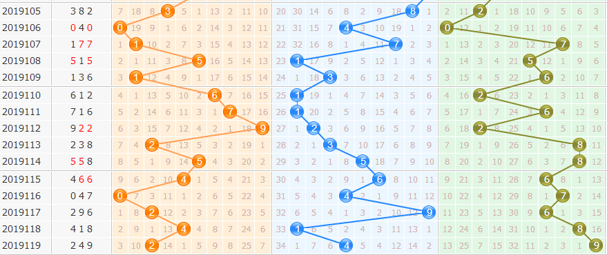 ③012路分析:为0路出1个,1路出1个,2路出1个;本期看好1路球出号,关注1码,综合分析看好,011路组合出号。
