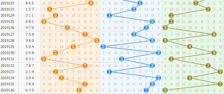 百位号码:百位上期振幅开出了1,小振幅开出,百位上号码开出都是小振幅,而且连着都是小振幅,本期也要继续看好小振幅出号,看好6号球附近的号码。