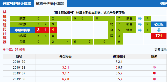 结合试机号胆码计算器来看,7号球近期开出是非常强势,但是刚刚结束了三期连开,现在开出可能有降温,不过可以留意一下;2号球有五期没有开出了,近期号码都是在陆续回暖的,看好2号球;1号球上期有开出,重复也是最近的一个热点,可以关注1号球。