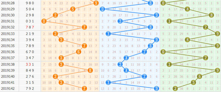 【百位分析】:百位上期开出7号球,号码走大开出,不过近期大号码开出也不强势,还是小号码开出更多,本期也要关注小号码的表现。