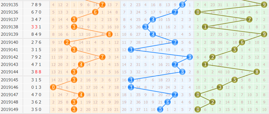 和值预测:和值上期开出8,最近和值号码走势明显都是比较偏向于中小号位置的,本期比较看好和值出号位置右移,本期苏会文根据号码走势分析,重点推荐和值范围:9—16