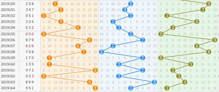 ③012路分析:为0路出1个,1路出1个,2路出1个;本期看好0路球出号,关注6码,综合分析看好,100 022路组合出号。