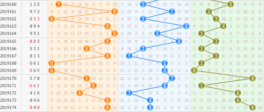 【和值分析】:和值上期开出了20,和值也是有走大,而且整体来看,当前和值是有些偏大开出的,所以本期也看好和值在中大区域取值。