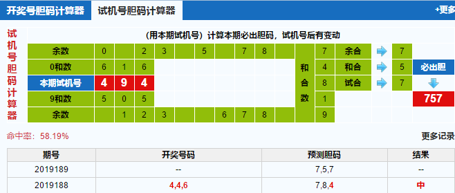 3d第2019189期试机号后北斗星预测分析:
