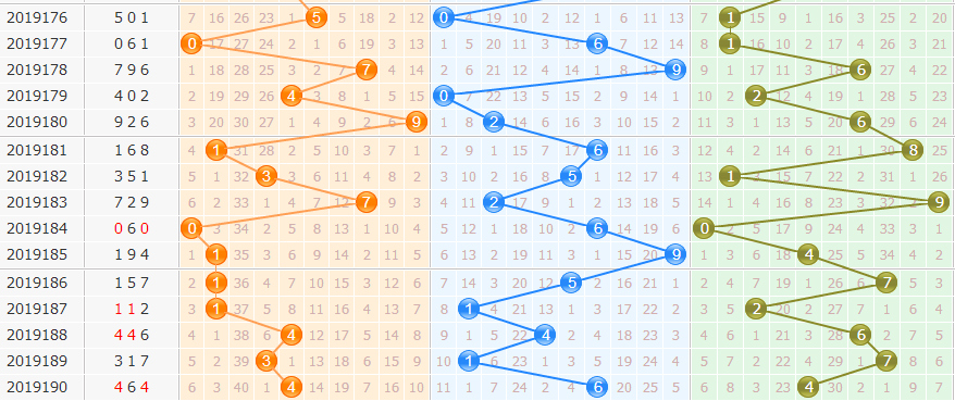 百位预测:百位上期开出号码4,百位小号连续出现,本期不排除中小号继续出现,结合近期的号码走势分析,苏会文本期比较看好中小跨度号码出现,重点推荐本期百位胆码:123567