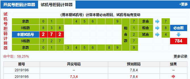结合试机号胆码计算器来看,7号球和4号球都是上期的开奖号码,而且都是有复开能力的,本期也要看好这两个号码的开出;8号球算是一个冷号,而且也是断断续续开出的,本期可以小防8号球表现。