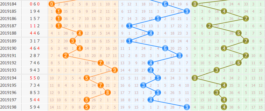 【012路分析】:上期是开出了201,号码开出差不多,现在2路号码和1路号码开出是最强势的,不过现在0路号码落下这么多,本期重点关注一下0路号码。