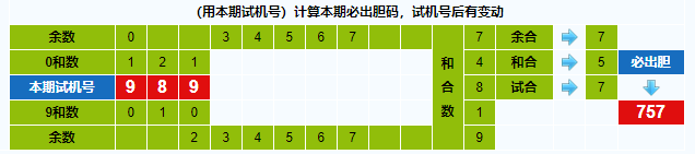 本期试机号胆码计算器推荐胆码:757