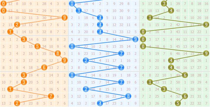【和值】:上期和值开出11点,振幅在上期回落10点,目前和值开始接触第三区间,小和值发展速度变慢,本期推荐和值10、14、20。
