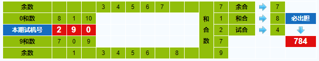 本期试机号胆码计算器推荐胆码:784