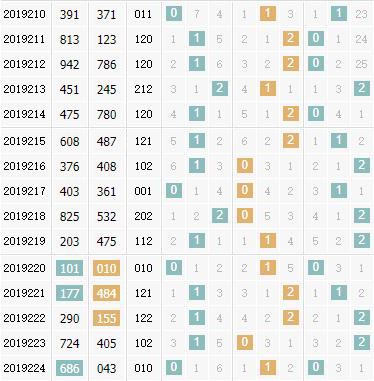 十位上,近期三路号码的表现情况比较类似,0路和1路在这两期里陆续开出,其中1路长久以来出号实力最为长久,注意1路持续持续。