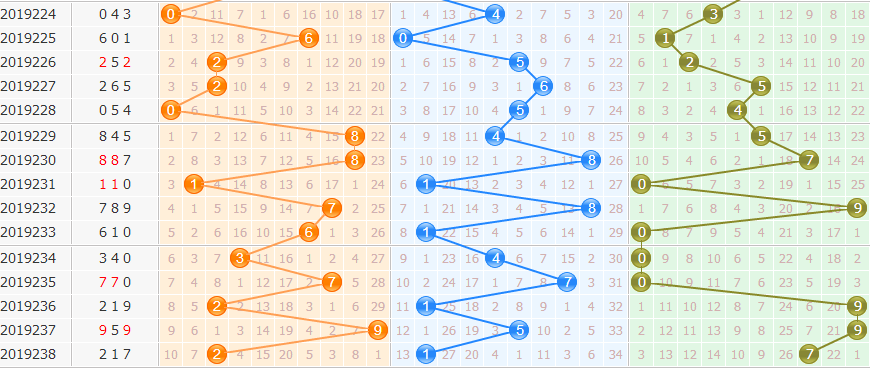 和值预测:和值上期开出10,和值近期的走势变动比较大,本期和值走势还是有几率会保持下降趋势,所以本期建议大家重点关注和值走势小幅度摆动,看中小号和值走势,具体推荐和值:6 11 14 15 16
