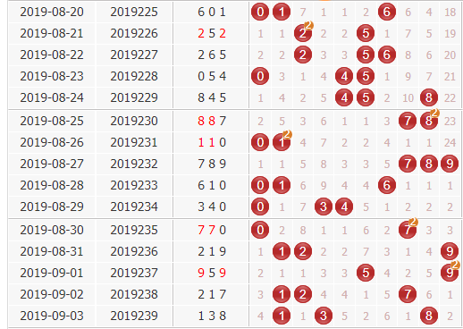 上期开出了非连号,近10期里两连号开出了6期,三连号开出了1期,非连号开出了3期,从走势来看,三连号开出的概率不大,近期预计会持续走低,本期的话重点关注两连号的开出。