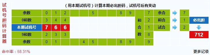 本期3d试机号胆码计算器给出结果:712