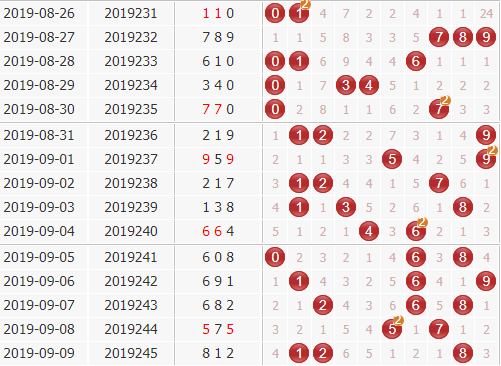 上期的开奖号码是812,和值是11,和尾是1,开出了一个1路和尾,近10期里0路和尾开出了5期,1路和尾开出了3期,2路和尾开出了2期,看来012路差距不大,本期重点关注0路和尾,防一下2路和尾的开出。重点推荐:0 2 3 6