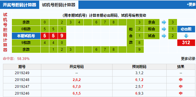 结合试机号胆码计算器来看,3号球有九期没有开出了,不过本期可以看好3号球的表现;1号球近期还是一个热号,本期也看好1号球的热开;2号球上期已经开出了,而且是对子号开出,这一次也要小防2号球。