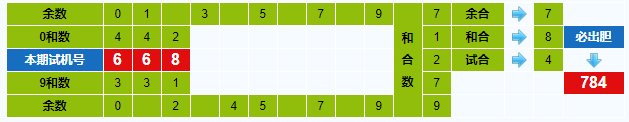本期试机号胆码计算器推荐胆码:784