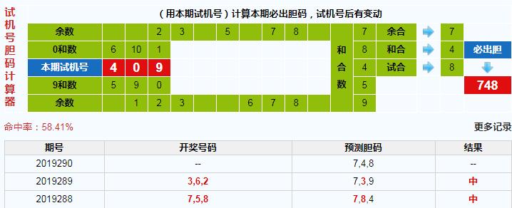 本期3d试机号胆码计算器给出结果:748