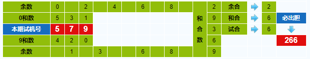 本期试机号胆码计算器推荐胆码:266