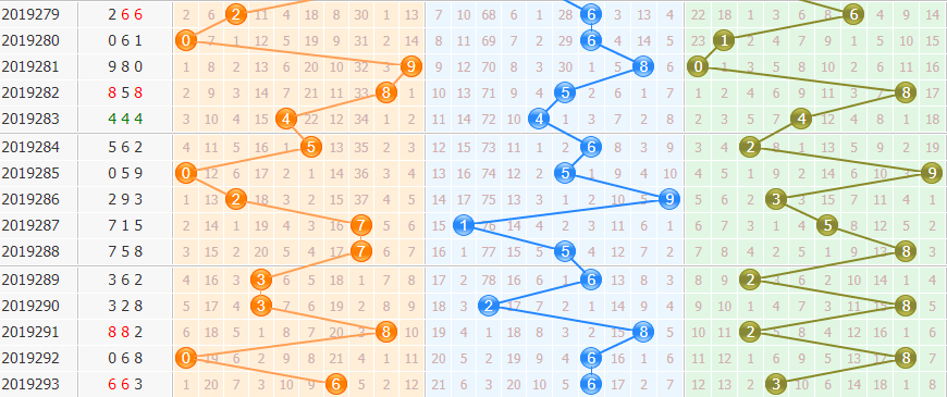 百位号码:百位上期振幅开出了6,振幅走大,近期百位上号码来回移动的幅度很大,振幅也是有些大的,本期主看大振幅。