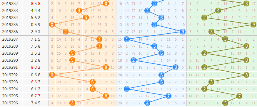3d第2019297期试机号前分析: