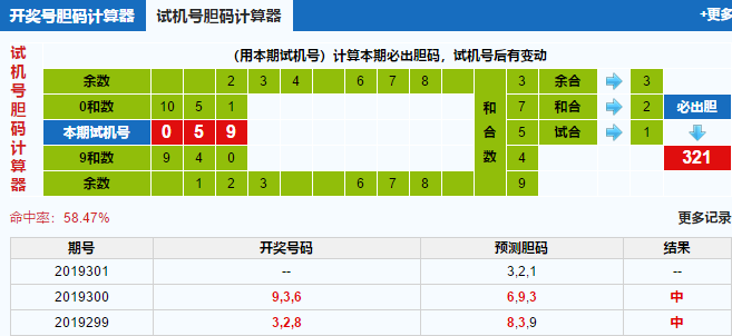 结合试机号胆码计算器来看,3号球上期已经是三期连开了,连开非常强势,本期也要看好3号球;2号球近期也是升温的,本期出号可能性很大;1号球是空缺了六期,之前几次出号都是间隔六期的,本期看好同间隔开出。