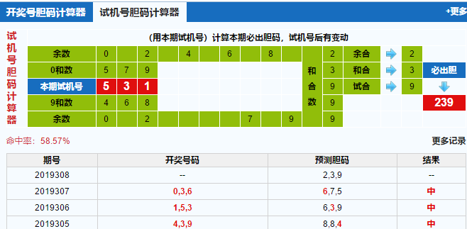 福彩3d第2019308期试机号:531
