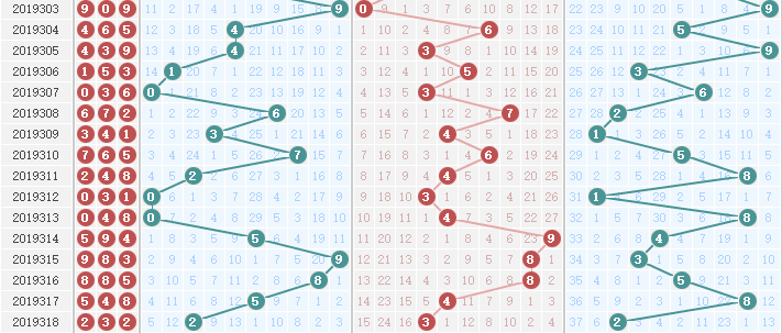 ③012路分析:为0路出1个,1路出0个,2路出2个;本期看好1路球出号,关注4码,综合分析看好121 011路组合出号。