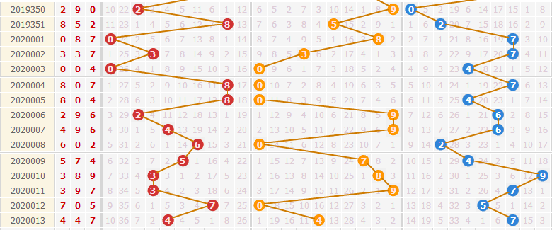 ③012路分析:为0路出0个,1路出3个,2路出0个;本期看好2路球出号,关注5码,综合分析看好112 220路组合出号。