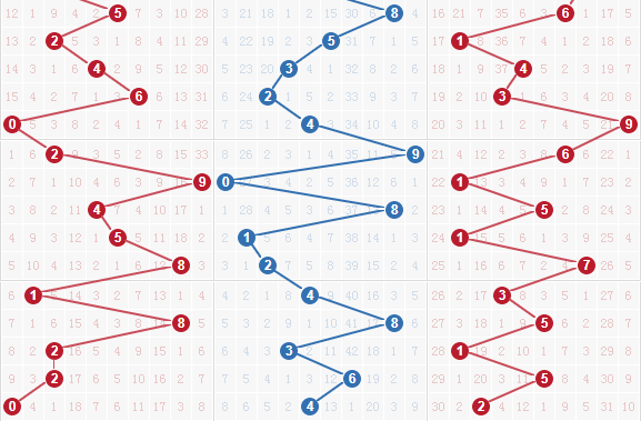 【百位】:上期开出0号,百位上近5期呈现一个冷-热-温-热-冷的变化趋势,冷热交替出现,走势上目前遗漏的冷温号居多,热号优势比较大的看0号。