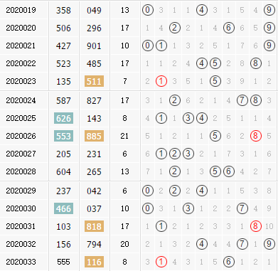 和尾上期是开出8,大和尾开出了,之前和尾都是在大小之间来回移动,这也保持了九期了,所以本期就看好小和尾的开出,尤其是重点看和尾0 2 3 4出。